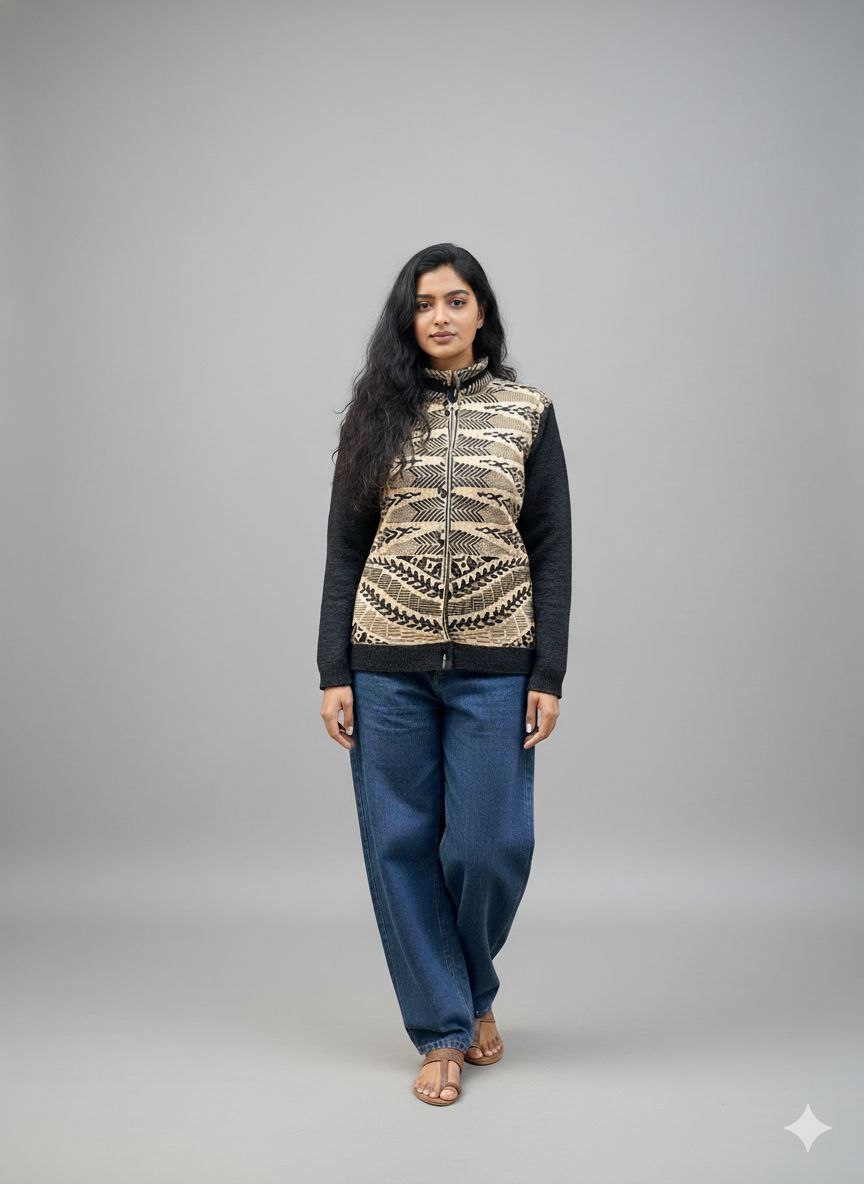 - This model is wearing a M or Medium. Women's woolen sweaters are available in M size. This cardigan is a must-have for every lady's winter wardrobe.